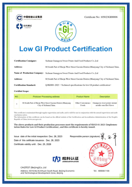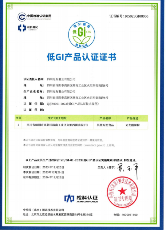光友薯業(yè)對此次酸辣粉獲得低GI認(rèn)證表示非常榮幸和自豪,光友薯業(yè)表示,將繼續(xù)秉持“健康、美味、創(chuàng)新”的理念,不斷推出更多符合消費(fèi)者需求的健康食品,為人們的健康生活貢獻(xiàn)更多力量。
