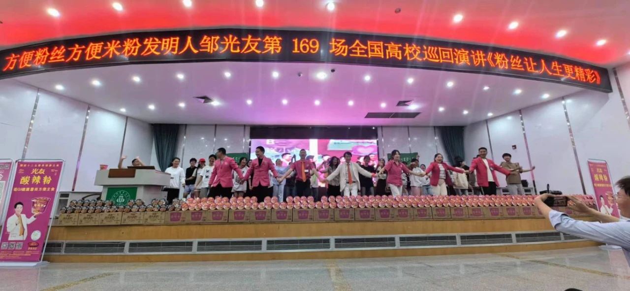 下午三時許,中國食品產(chǎn)教融合共同體副理事長、中國食品科學(xué)技術(shù)學(xué)會理事、方便粉絲方便米粉發(fā)明人、方便粉絲專家、教授級高工、新中國成立60年“三農(nóng)”模范人物、光友薯業(yè)創(chuàng)始人、光友薯業(yè)董事長鄒光友在四川農(nóng)業(yè)大學(xué)食品學(xué)院如期舉行全國高校巡回演講第169場——《粉絲讓人生更精彩》,這場關(guān)于創(chuàng)業(yè)的勵志演講大獲成功,近700人的禮堂現(xiàn)場一片歡騰,在座師生和直播間的觀眾無不受益良多。