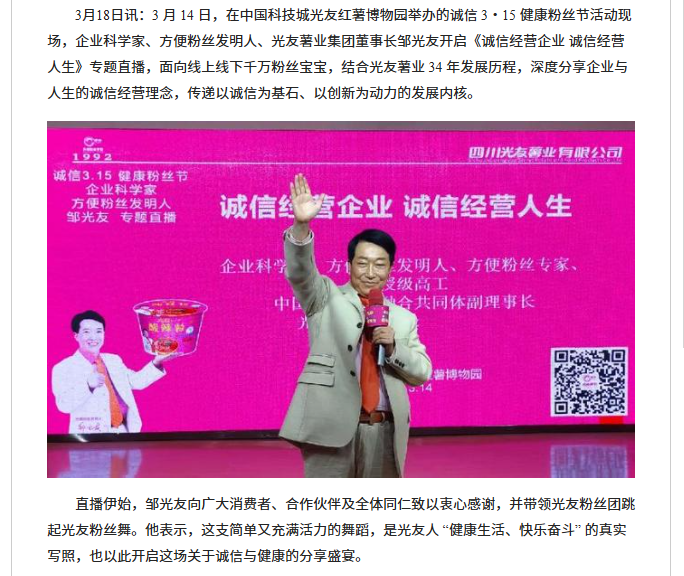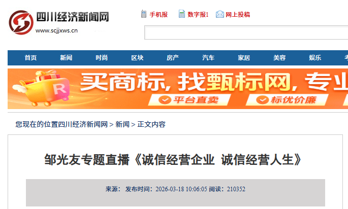 轉(zhuǎn)載四川經(jīng)濟(jì)新聞網(wǎng) 鄒光友專題直播《誠(chéng)信經(jīng)營(yíng)企業(yè) 誠(chéng)信經(jīng)營(yíng)人生》
