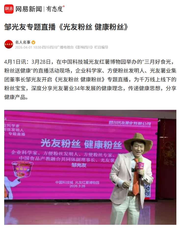 轉載網易新聞鄒光友專題直播《光友粉絲 健康粉絲》